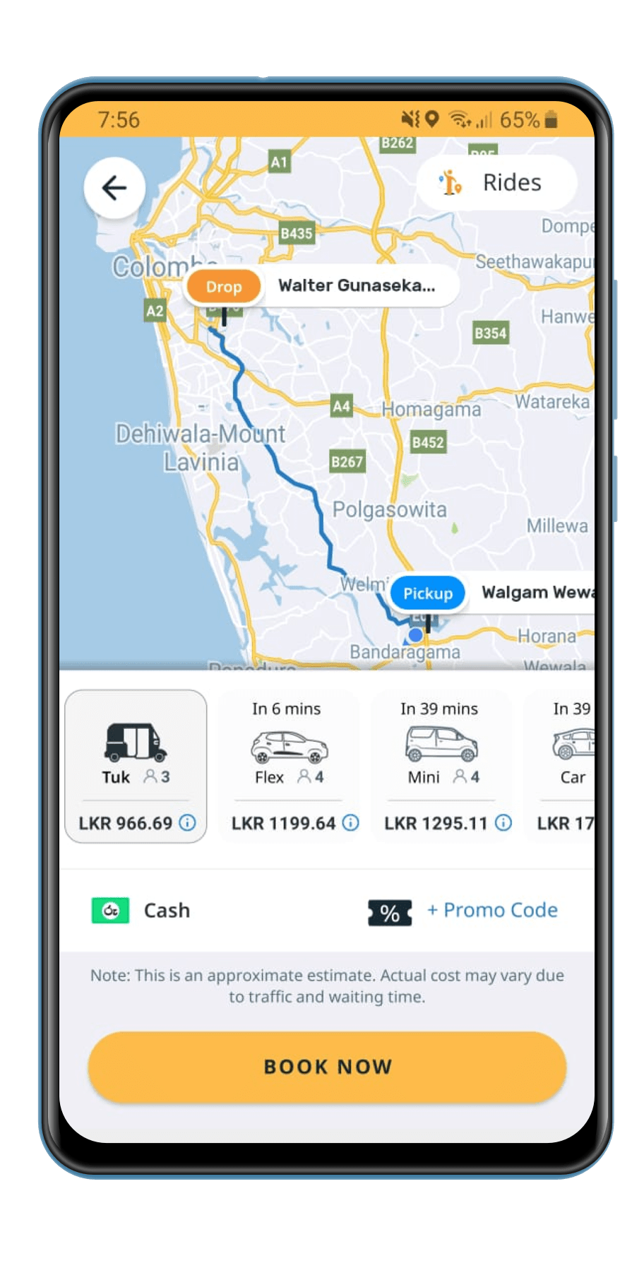 Key in your pick-up and drop-off locations to get your estimated fare.
